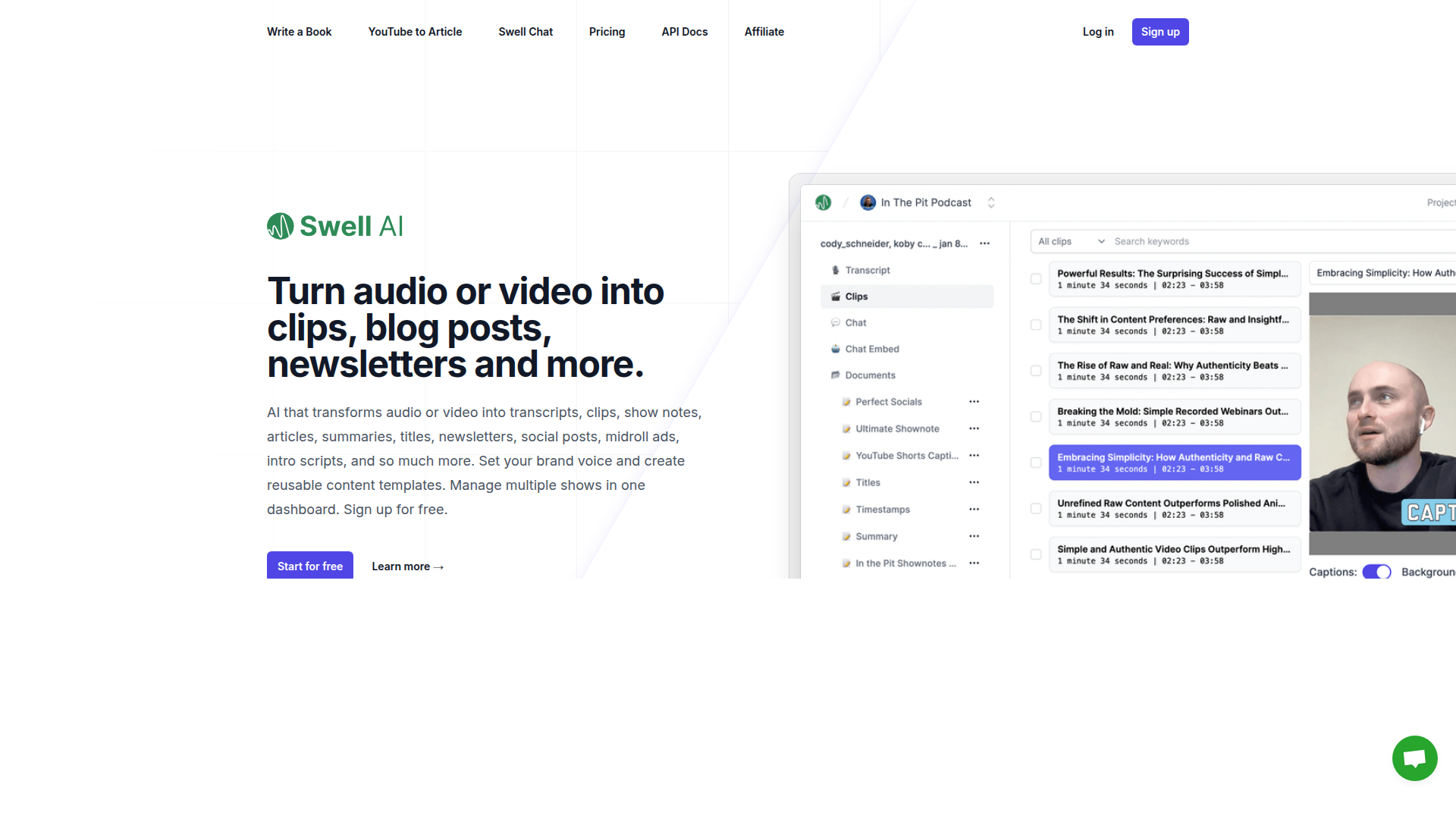 Swell AI turns podcasts or videos into transcripts, clips, show notes, articles, summaries, titles, newsletters, social posts, and more. Sign up for free., Use Loom to record quick videos of your screen and cam. Explain anything clearly and easily – and skip the meeting. An essential tool for hybrid workplaces.
